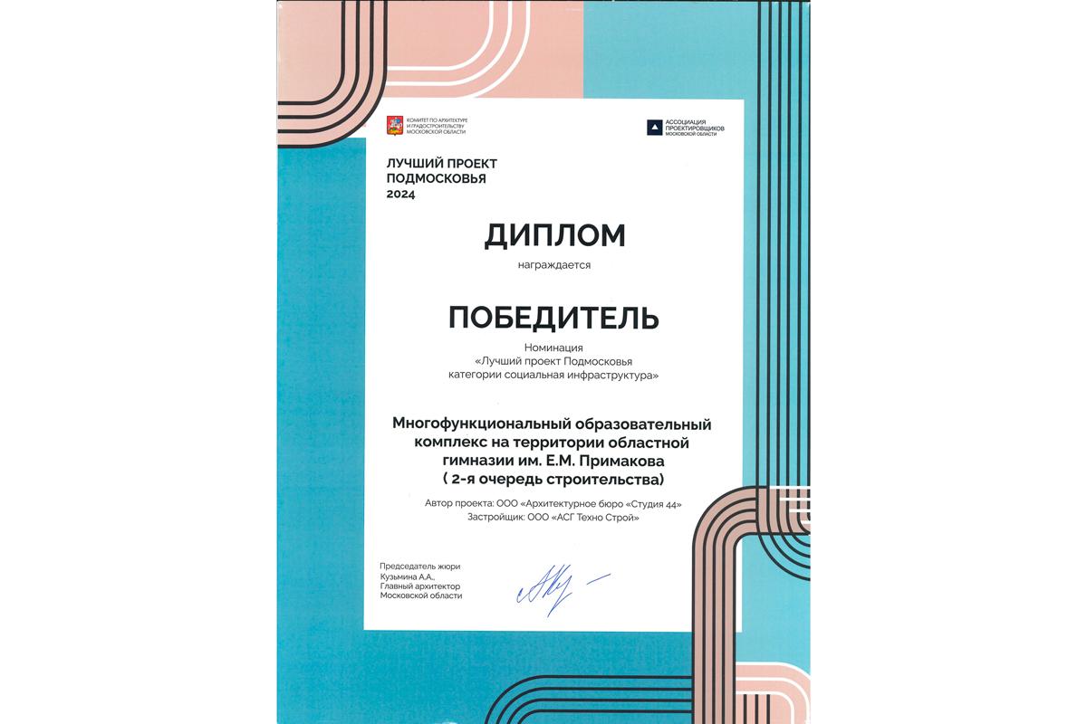 Победителем в номинации «Социальная инфраструктура» стал наш проект второй очереди гимназии им. Е.М. Примакова.